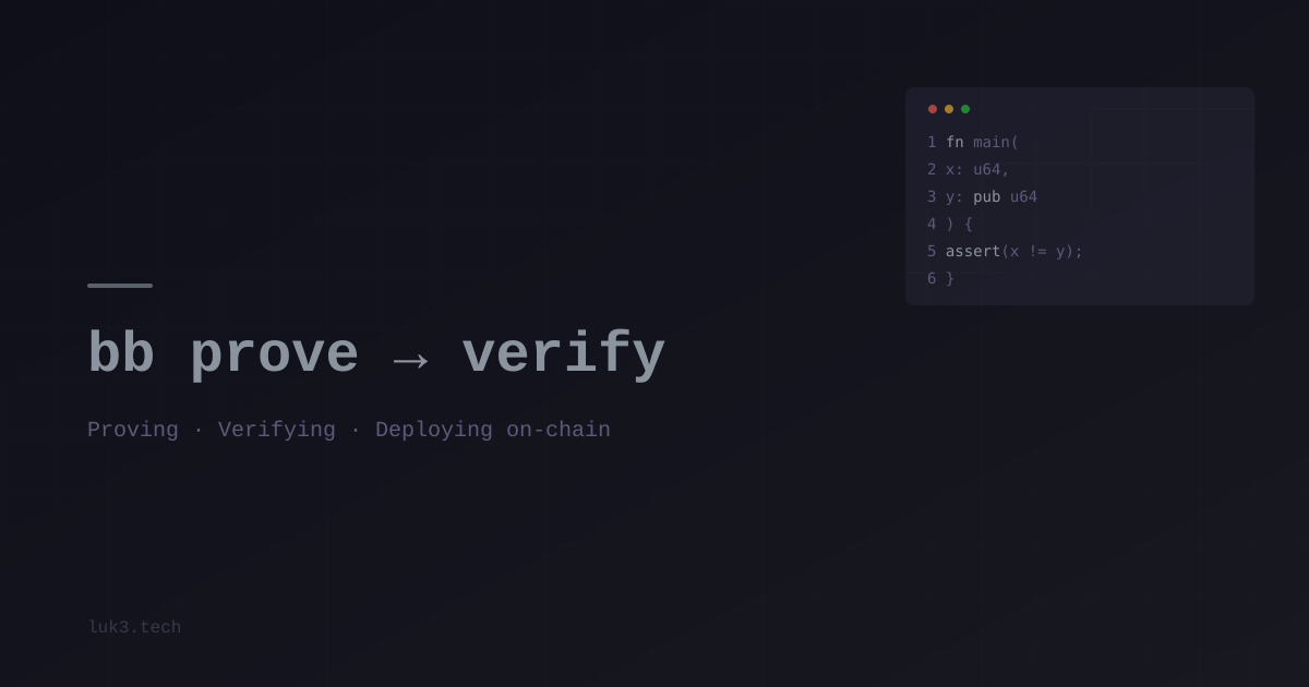 Using Barretenberg to generate and verify proofs, deploying a Solidity verifier with Foundry, and understanding the trust model.